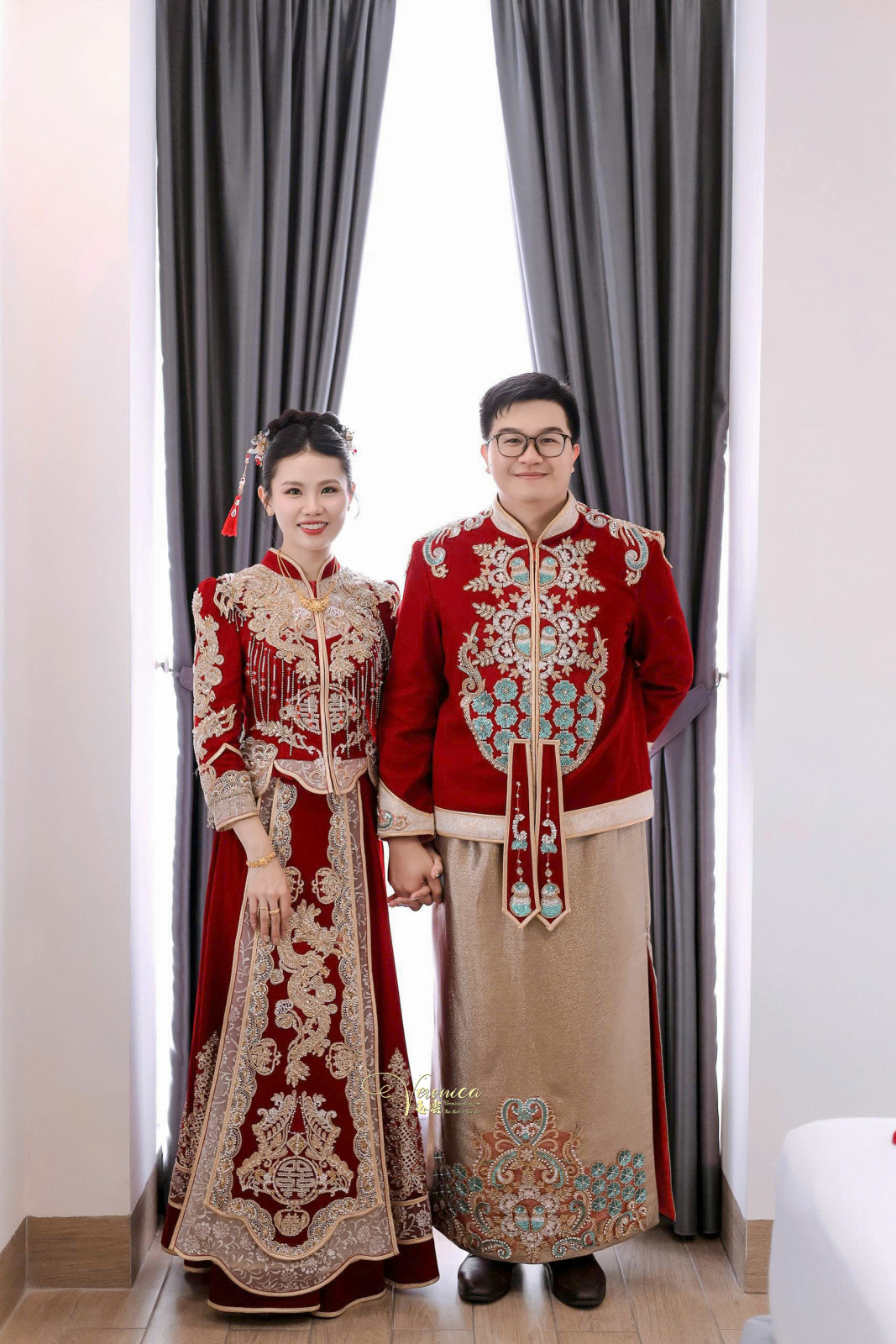 Ngày cưới là khoảnh khắc hai trái tim hòa làm một và bộ áo khoả nam nữ đồng bộ chính là biểu tượng hoàn hảo nhất cho sự gắn kết thiêng liêng ấy. Bộ hỉ phục này là minh chứng cho một tình yêu hài hòa, tương xứng và ăn ý đến từng chi tiết, đồng thời cũng là một trang phục cưới mang đậm nét truyền thống Trung Hoa được nhiều dâu rể lựa chọn.