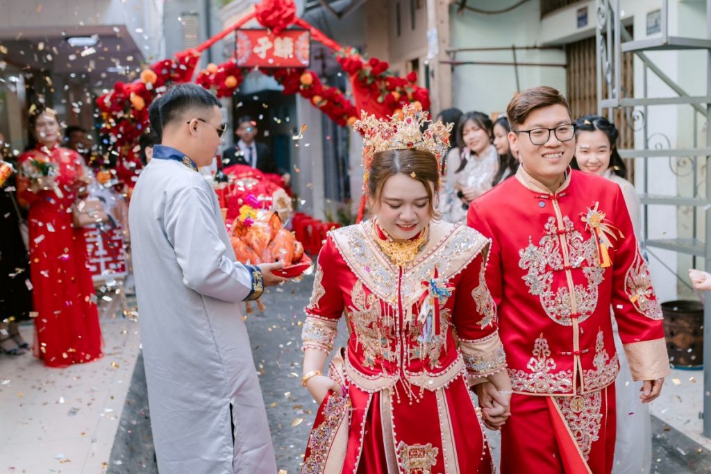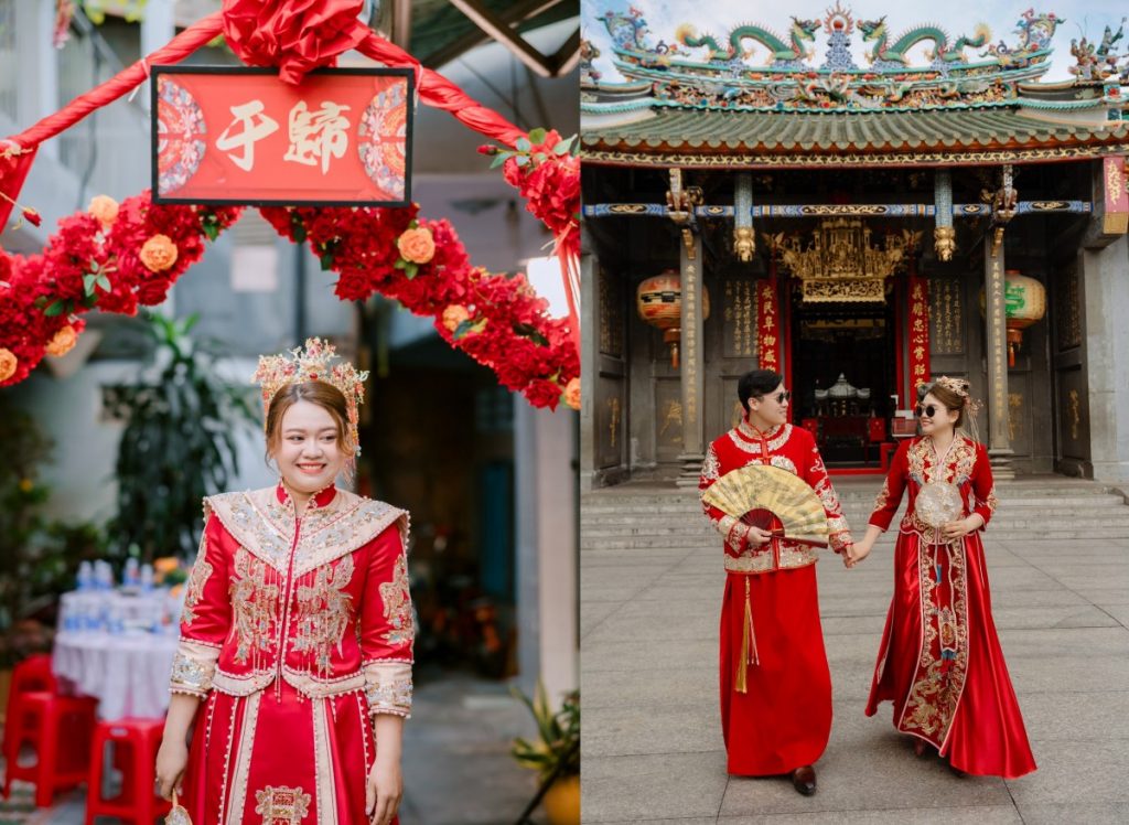 Như trường hợp của cô dâu Du Thi, nàng chọn cách tổ chức đám cưới đậm chất người Hoa để đảm bảo đúng phong tục cưới truyền thống, đảm bảo phong thuỷ và may mắn, viên mãn sau này.