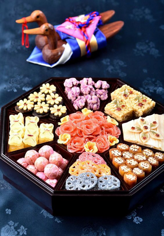 Tuỳ địa phương và văn hoá mà mâm bánh sẽ được thể hiện những loại bánh khác nhau. Các loại bánh có thể kể đến như bánh phu thê, bánh pía, bánh in, bánh hửng, bánh bông lan … Mâm bánh là tượng trưng cho kết quả ngọt ngào của tình yêu. Trải qua sự nhào nặn, thử thách, cuối cùng có được thành quả đó chính là sự viên mãn và hạnh phúc.