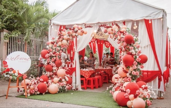 Không chỉ đẹp mắt, việc sử dụng bong bóng còn giúp bạn tiết kiệm đáng kể chi phí trang trí. Bạn có thể thuê hoặc tự tay làm một chiếc cổng hoa cưới đơn giản theo ý thích.