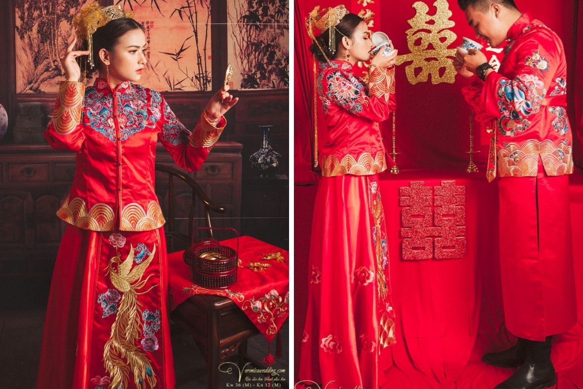 Với concept Đông Tây Giao Hoà, Veronica Wedding sẽ tạo ra một không gian độc đáo và đẹp mắt, kết hợp các yếu tố truyền thống và hiện đại. Chúng tôi sẽ tận dụng các trang phục áo khoả , phụ kiện, và không gian để tạo ra một không gian mang các dâu rể trở về thời xa xưa. Đáp ứng được nhu cầu khi khoác lên mình bộ áo khoả là mong được nhiều may mắn, con đàn cháu đống, sự nghiệp thăng hoa của nhiều người Hoa Kiều tại Việt Nam.