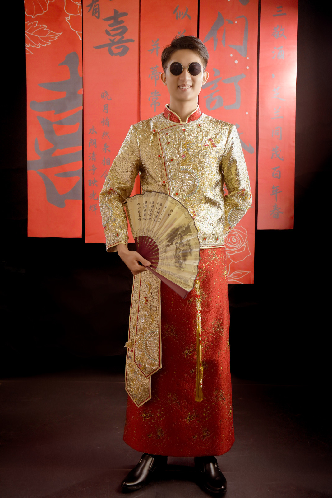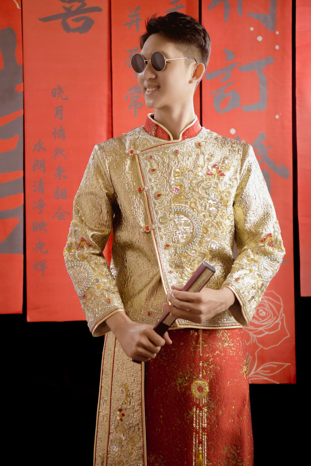 Phong cách: Khi kết hợp cùng phụ kiện kính đen, bộ trang phục trở nên vô cùng thời thượng, mang đến hình ảnh một chú rể hiện đại, tự tin và đầy cá tính.