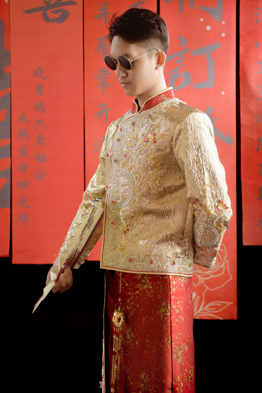 Điểm nhấn: Họa tiết thêu nổi 3D bằng chỉ vàng kim bắt sáng, tôn vinh trọn vẹn sự mạnh mẽ của người đàn ông trong ngày đại hỷ.