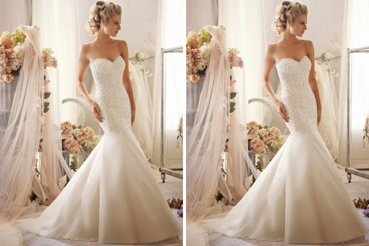Soiree đuôi cá cúp ngực được biết đến là những thiết kế đời đầu khi cho ra đời các dòng đầm cưới đuôi cá. Đây cũng là một trong những dáng váy phổ biến hiện nay trên thị trường. Với thiết kế này giúp cô dâu tôn thêm vẻ đẹp cho đôi vai thon gọn, không quá gợi cảm. Không những vậy, bằng chất liệu cao cấp ôm sát phần thân trên của váy đã tôn lên vòng 1 và vòng 2. Đồng thời còn giúp cô dâu hách dáng khi ăn gian được thêm chiều cao của mình.